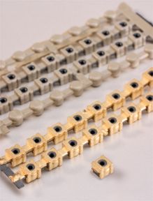 设计用于蜂窝电话的“微型迷你”切换Co-AX连接器时,Tyco工程师面临着一些熟悉的挑战:促进电导率,从干扰屏蔽,避免静电。旋转连接器提供双功能:用于内部系统测试的连接和外部通勤天线的同轴连接器。为了在具有3平方毫米的表面积的一部分中完成这一点,Tyco选择了用于特定功能的材料的组合。在热塑性底物 - 铜中建立了连续的金属层,用于电导率,镍作为抗腐蚀性,最后用于可焊性的金。每层都需要粘附到热塑性底物并通过重新流烤箱送到印刷电路板的热粘合。