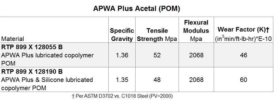 RTP公司的新型APWA PLUS™(全聚合物磨损合金)化合物是创新产品,可提供对其他耐磨化合物的众多益处。雷电竞官网入口APWA Plus化合物利用专有的聚合物合金来改善磨损和摩擦阻力,导致移动和滑动部件,具有更长的生命周期和降低的维护成本。